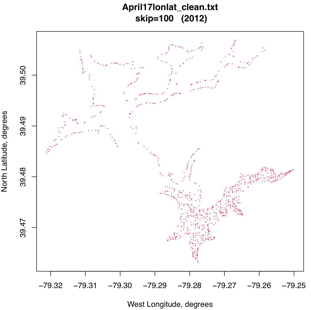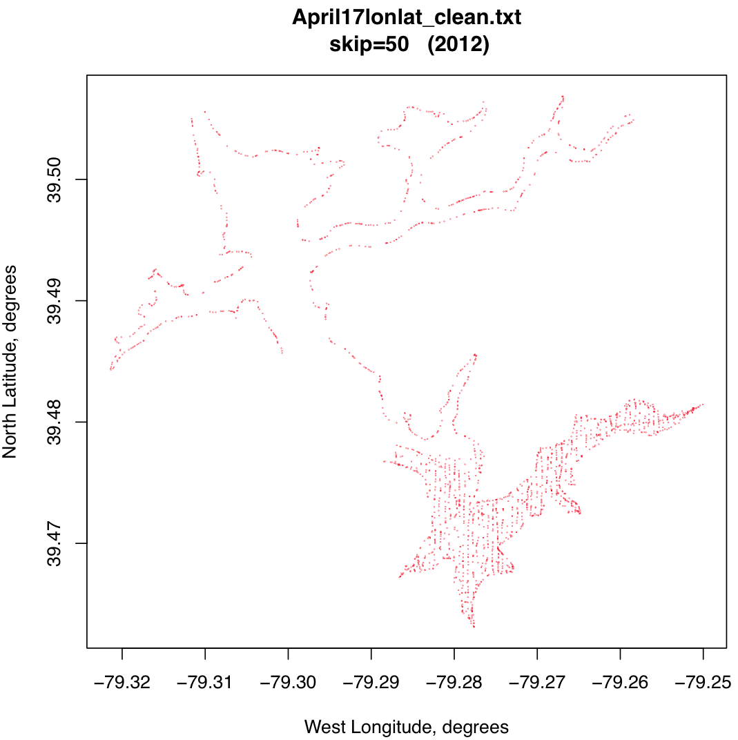 Similarly, all of the data for all of the 7 days of measurements are in one file here [3.3 MB]. The files with plots for every 50th point are here. These are pdf's so that they can be enlarged. Note also that these are in latitude/longitude coordinates.